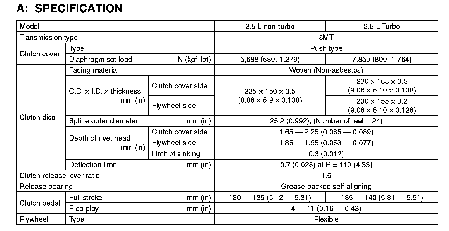 Clutch: Specifications