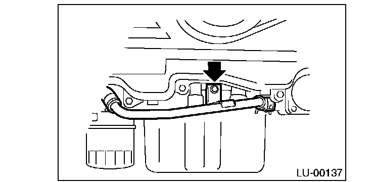 6) Remove the bolts which install water pipe of oil cooler to oil pump.