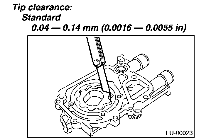 Measure the clearance between the outer rotor and the oil pump case. If clearance is out of standard, replace the oil pump case.
