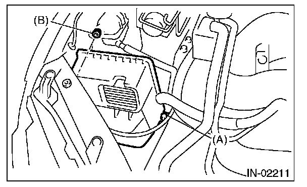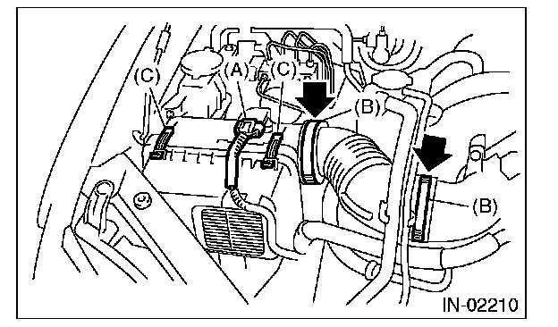 5. Loosen the clamp (B) which connects the air intake boot and intake duct.