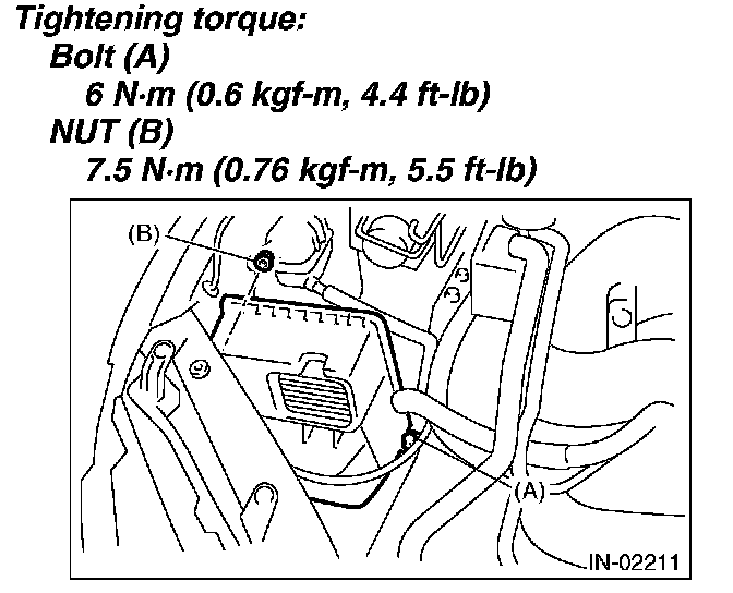 9. Remove the bolts (A) and nuts (B) which secure the air cleaner case (front) to the body.