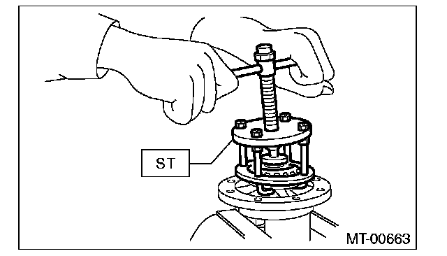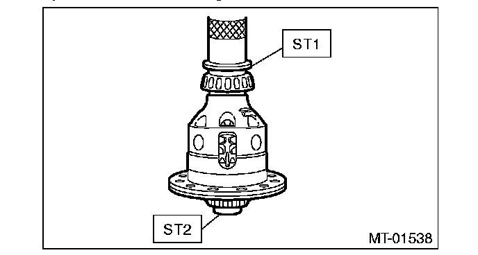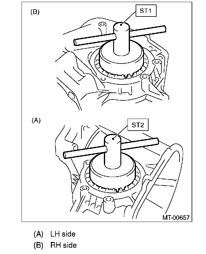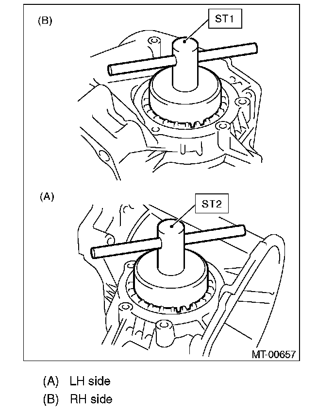 7) Use the ST to attach bearings of differential cases RH and LH.