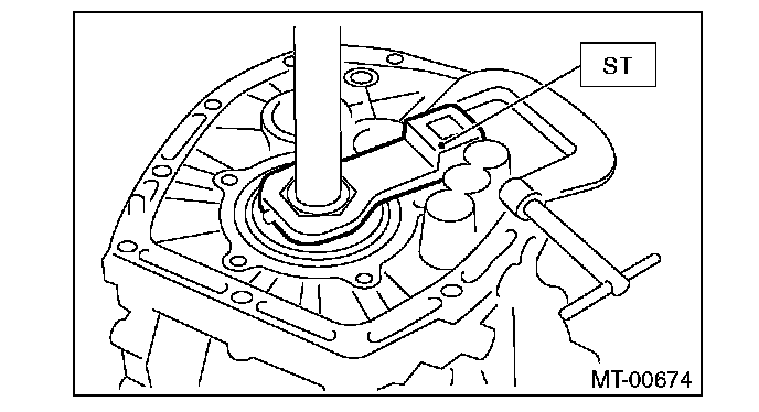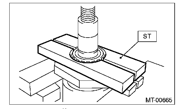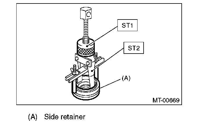 4) Remove the bearing outer race from the side retainer, using the ST.