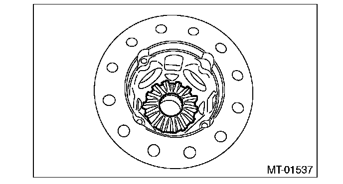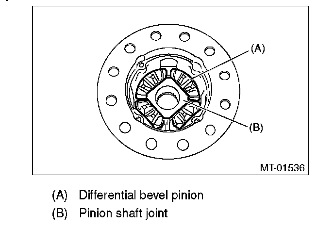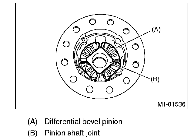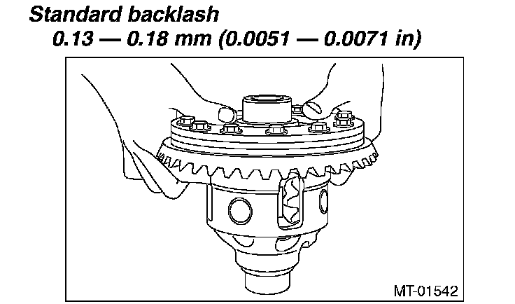 ^ It is recommended that backlash be measured by 2 people. One person should push the differential bevel gear upward (differential case LH side), and the other person measure the backlash.