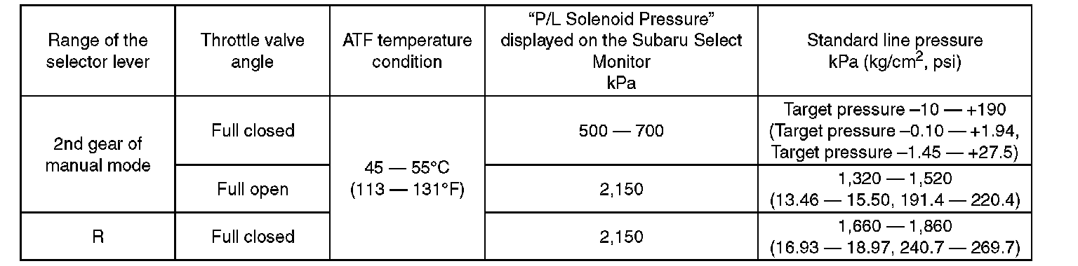 ^ Fully open or fully close the throttle valve angle in order to match the "P/L Solenoid Pressure" displayed on the Subaru Select Monitor.