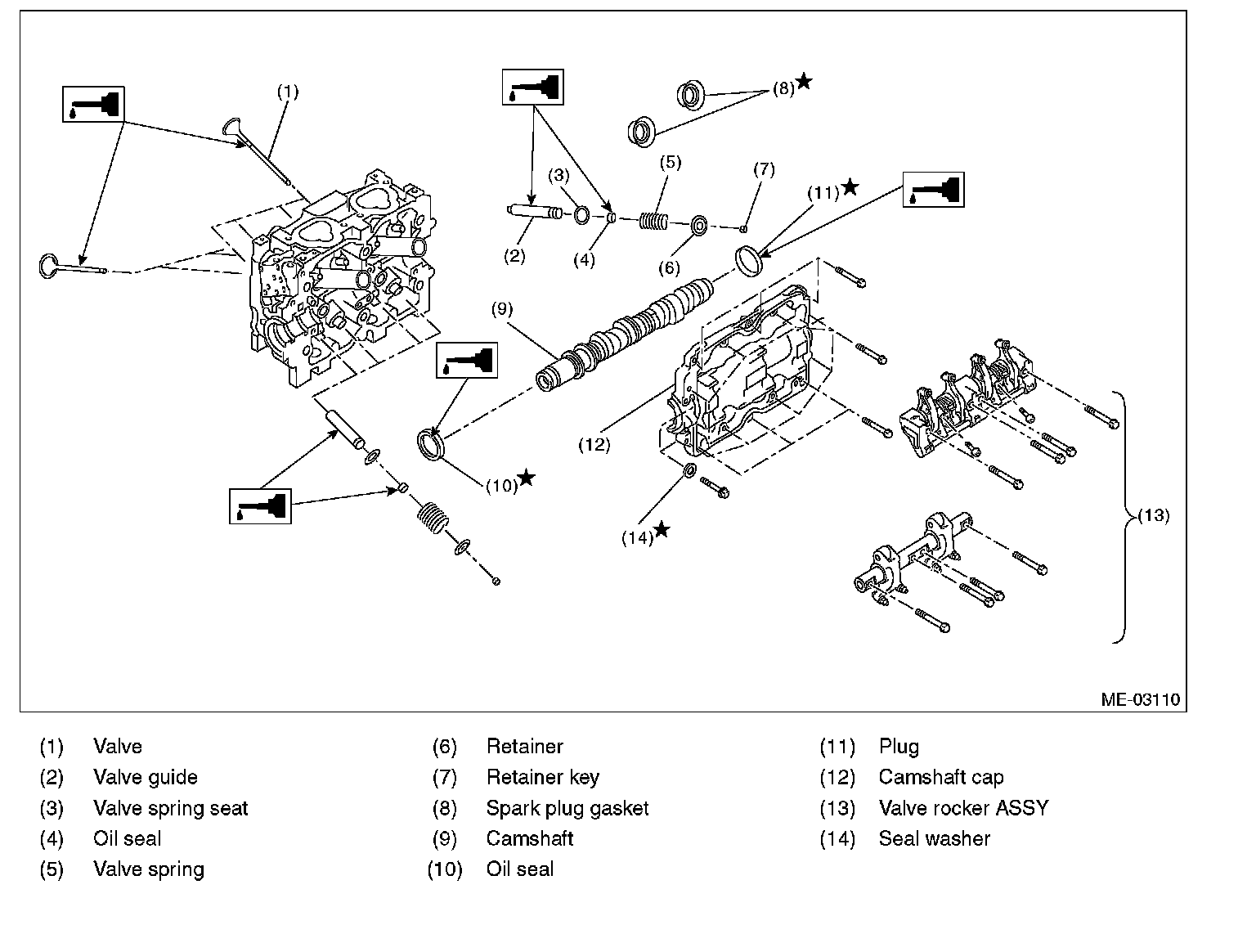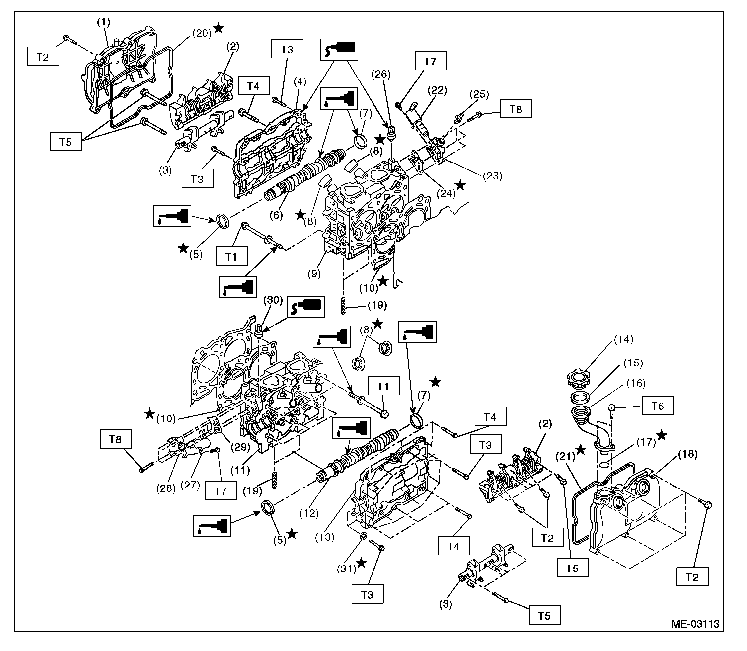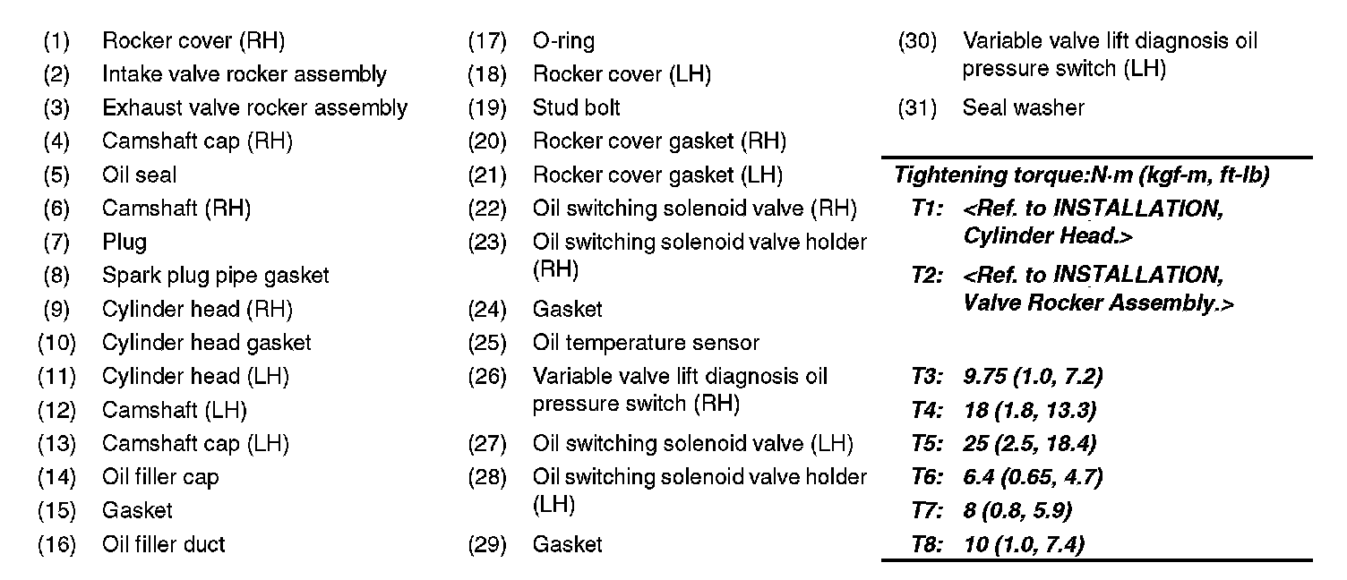 NOTE: Perform the work with the engine installed to body when replacing a single part. Refer to "Valve Clearance" for preparation.