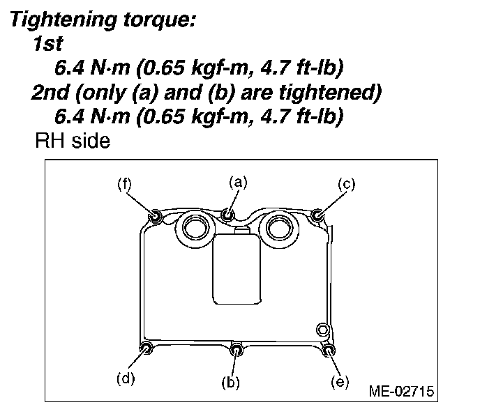 Tightening torque: 6.4 N-m (0.65 kgf-m, 4.7 ft-lb)
