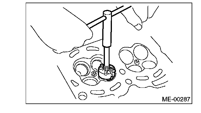 7) Ream the inside of valve guide using ST. Put the ST in valve guide, and rotate the ST slowly clockwise while pushing it lightly. Bring the ST back while rotating it clockwise.