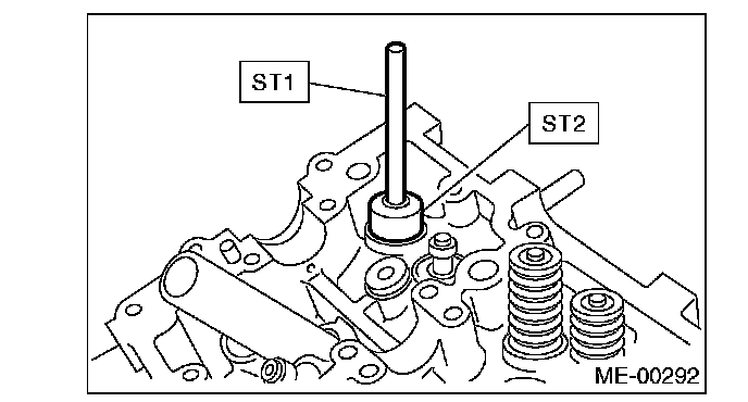 2) Insert the ST2 into valve guide and press it down to remove the valve guide.