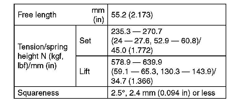 1) Check the valve springs for damage, free length, and tension. Replace the valve spring if it is not within the standard value presented in the table.