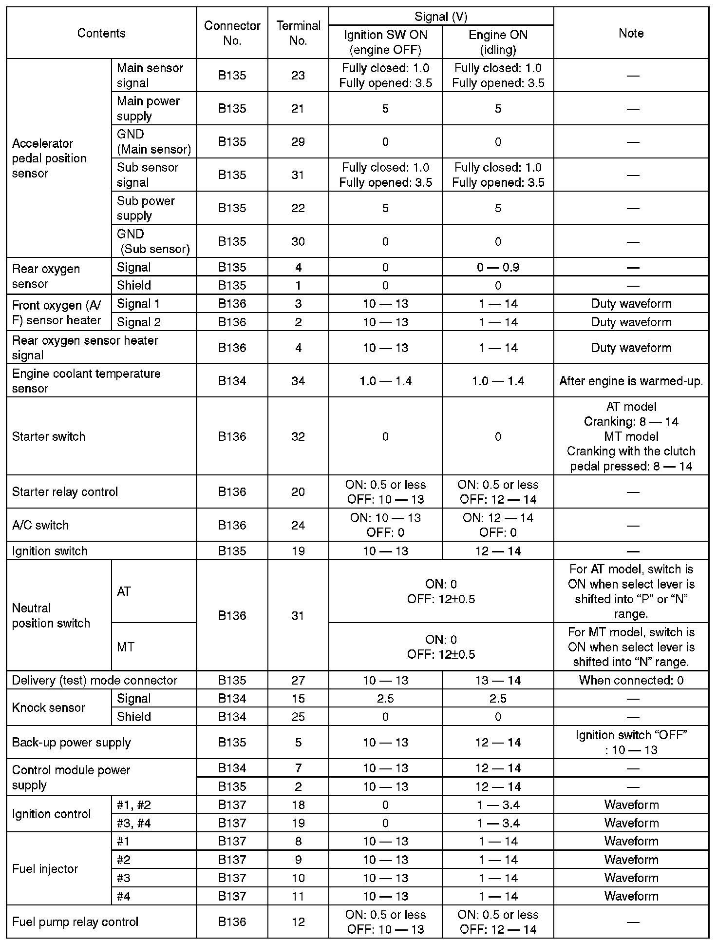 Engine Control Module (ECM) I/O Signal (Part 4):
