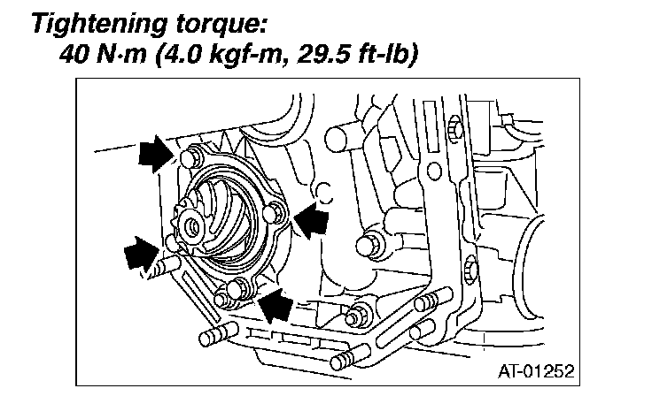 2) Install the oil pump housing assembly to the converter case, and secure them by tightening the four bolts evenly.