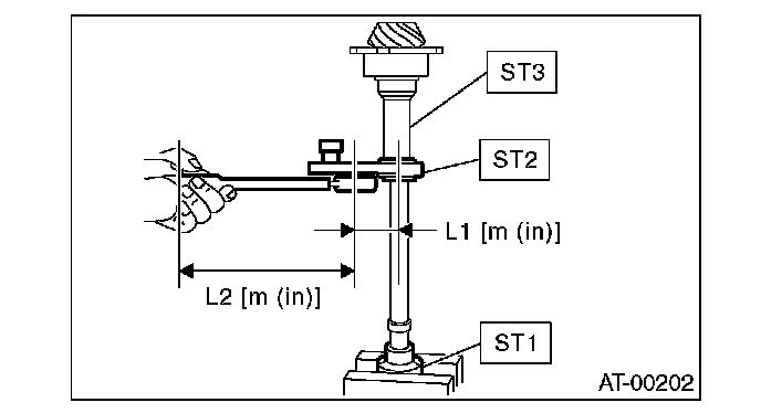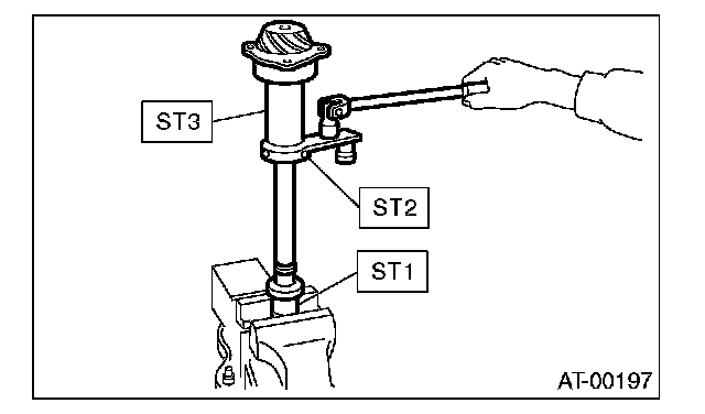 3) Rotate the drive pinion a few times using ST1 and ST2.