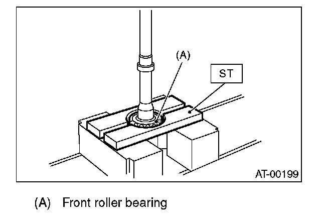 4) Separate the front roller bearing from the drive pinion shaft using a press and the ST.