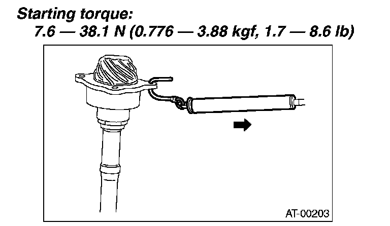 6) Measure the starting torque of the bearing. Make sure the starting torque is within the specified range. If the torque is not within specified range, replace the roller bearing.