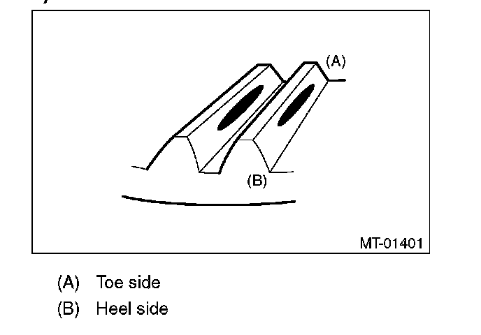 Check item: Tooth contact surface is slightly shifted toward the toe side under a no-load condition. (When driving, it moves towards the heel side.)