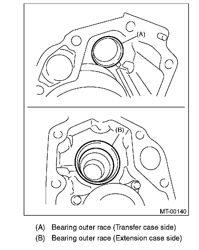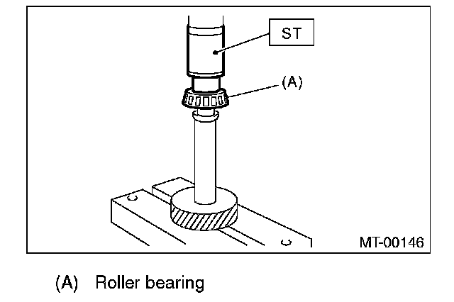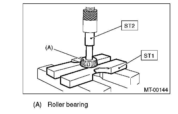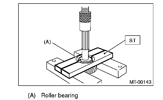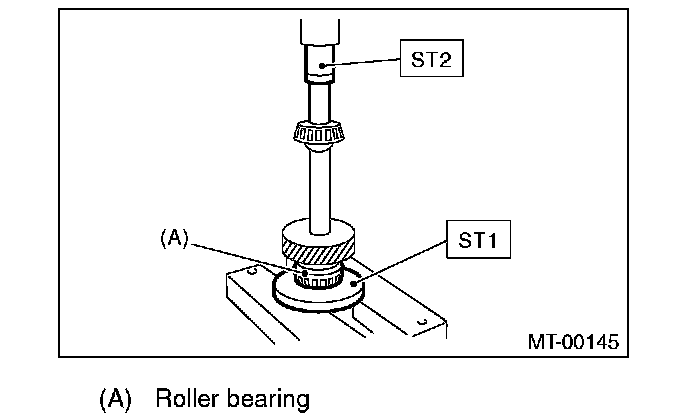 2) Using ST1 and ST2, remove the roller bearing (transfer case side).