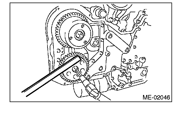 1) Install the cam sprocket. To lock the camshaft, use the ST.