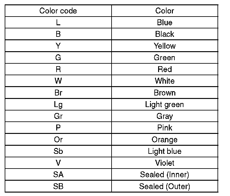 - The following color codes are used to indicate the colors of the wires.