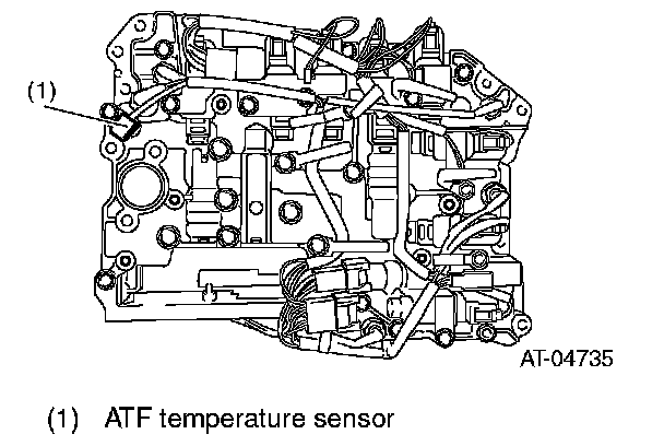 This temperature sensor uses thermistor and is installed on the control valve body. The ATF temperature sensor detects the ATF temperature and outputs it as electrical resistance signal.