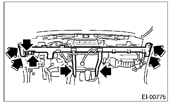 7. Remove the bolts at the side of the passenger's side instrument panel.