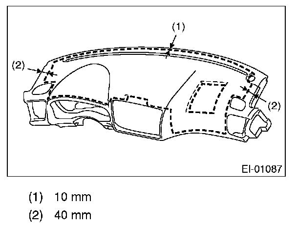 Apply at a position spaced by 10 mm from the instrument panel front end, and 40 mm from the ends on both sides.