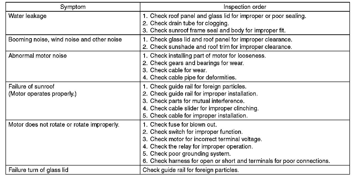 SUNROOF CONTROL SYSTEMINSPECTION