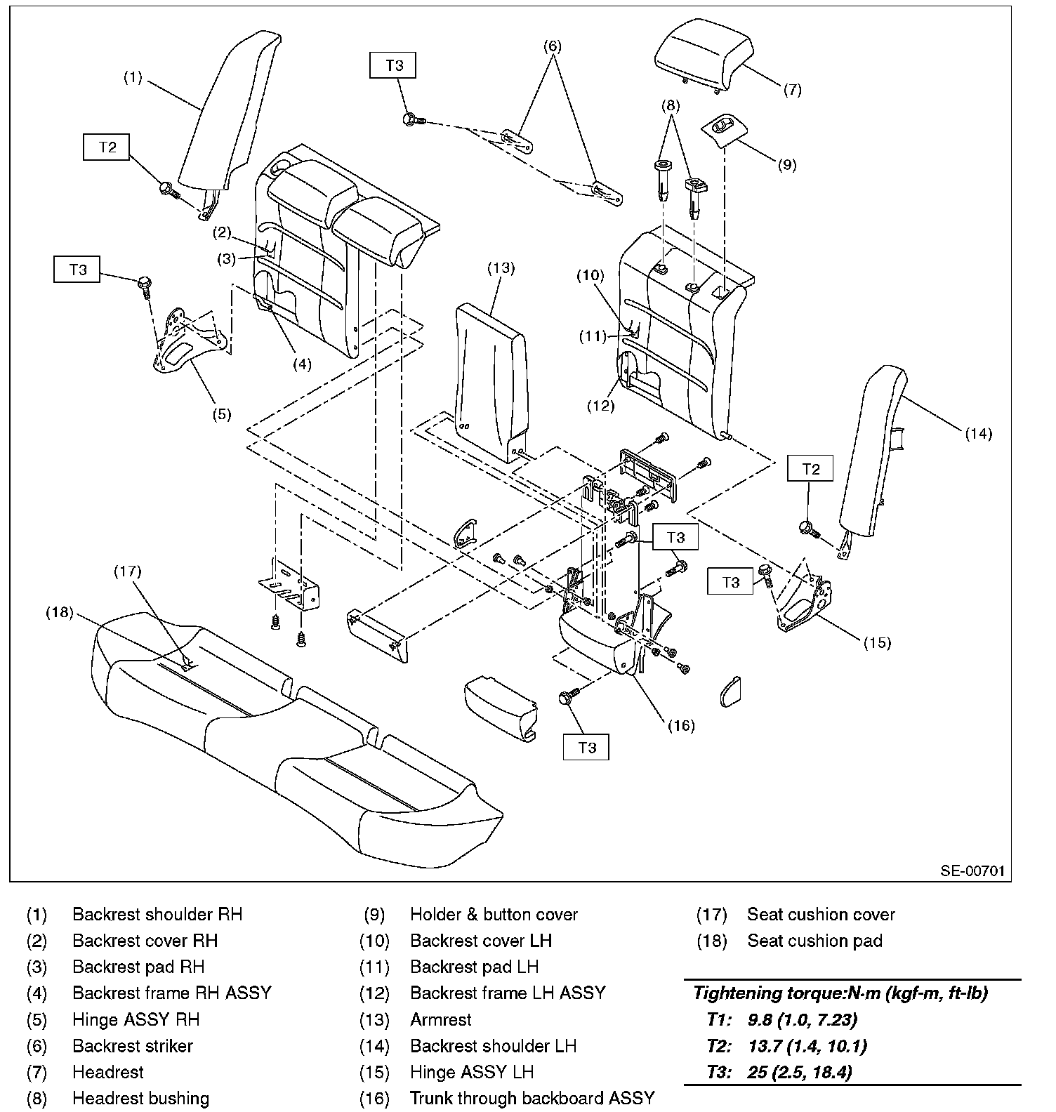 7. Similarly, remove the backrest assembly RH by performing the above step 8).