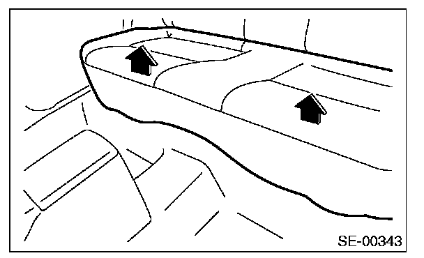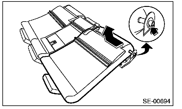 5. Push the entire seat to the direction of arrow and remove backrest assembly LH from the hinge assembly.