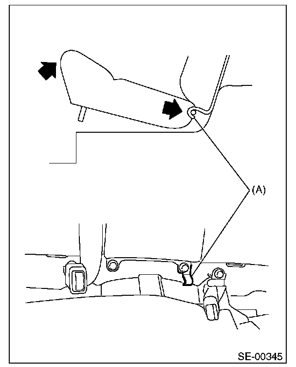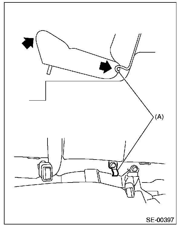 2. Remove the hook (A) by pushing it back while lifting the front side of the seat cushion, and remove the seat cushion.