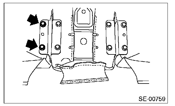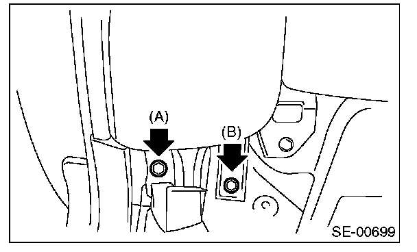 9. Remove the lower anchor bolt (A) of the outer seat belt and backrest shoulder bolt (B).