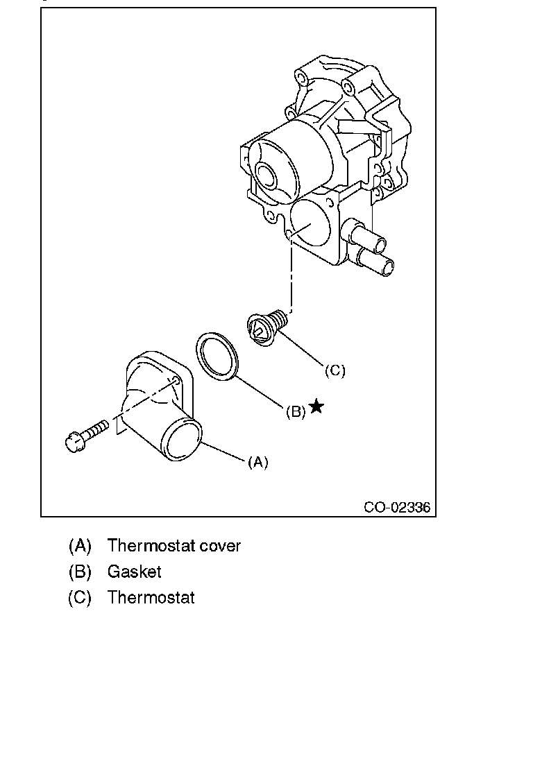 6) Remove the thermostat cover, and then remove the gasket and thermostat.