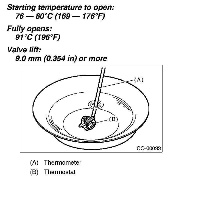^ Leave the thermostat in the boiling water for five minutes or more before measuring the valve lift.