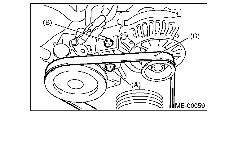 1) Install the front side belt (C), and tighten the slider bolt (B) so as to obtain the specified belt tension.