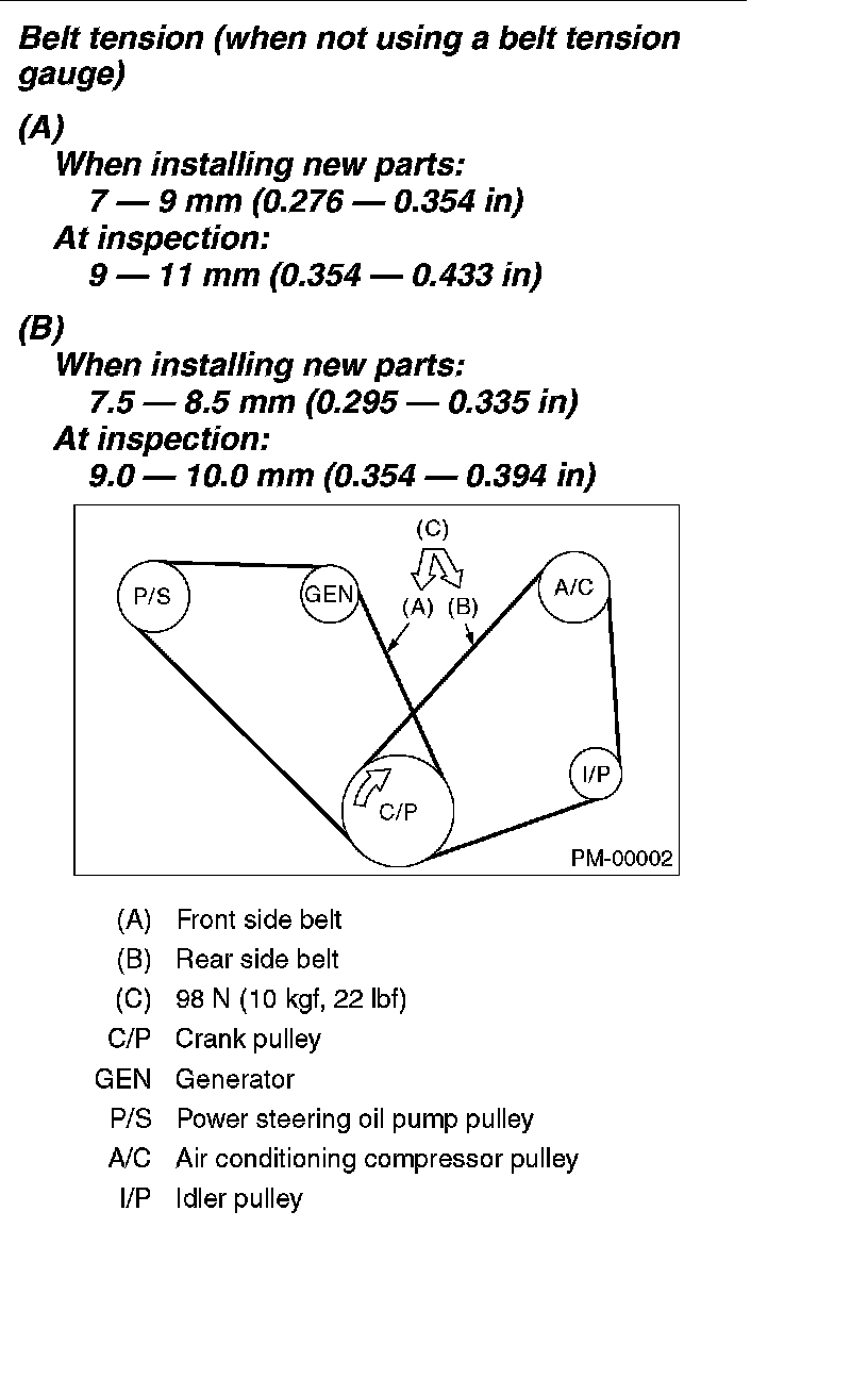 2) Check the V-belt tension and adjust it if necessary by changing the generator installing position or idler pulley installing position.