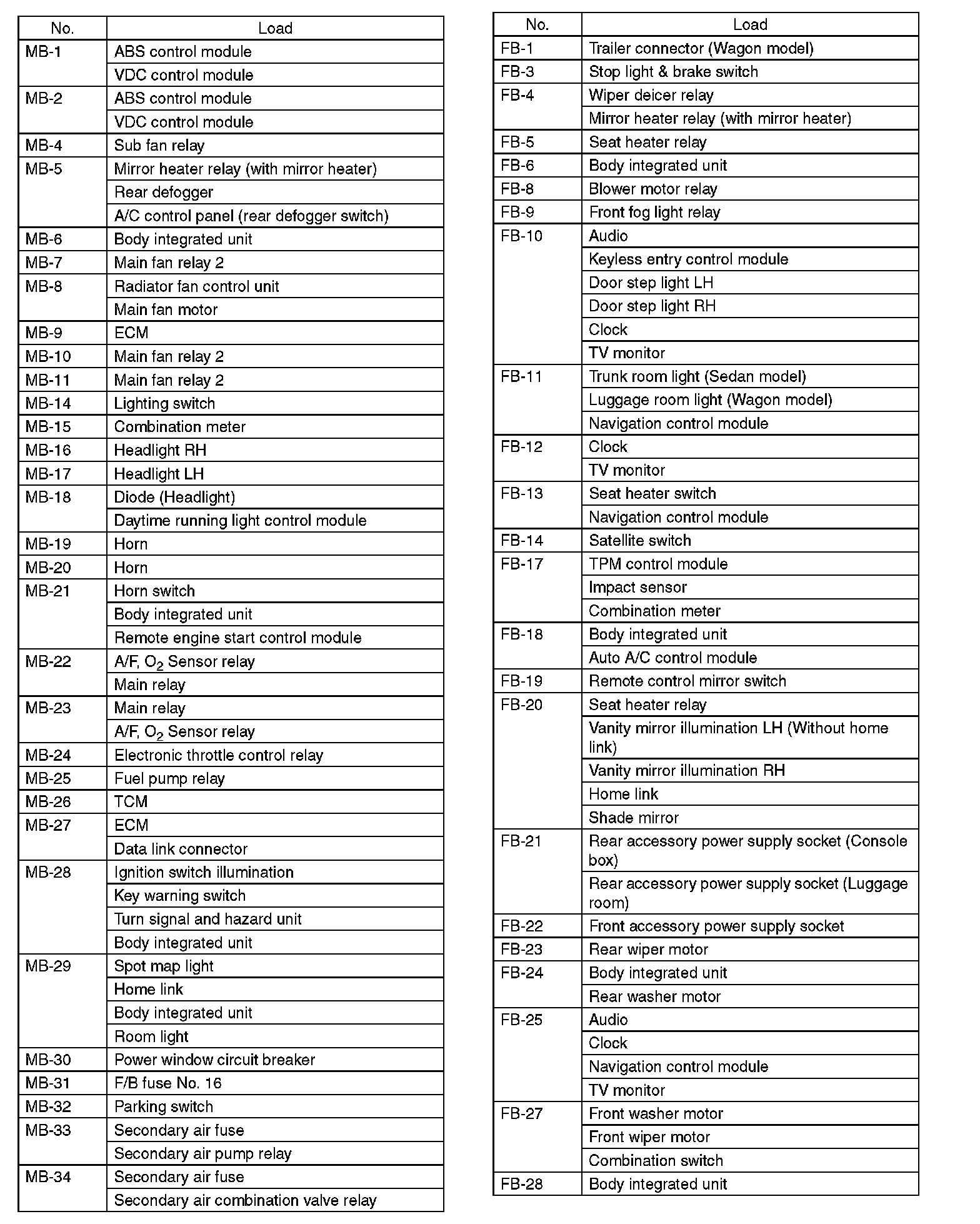 Diagram Legend MB-1 To FB-28: