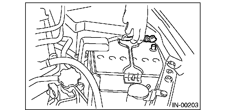 1) Disconnect the battery cable, and then remove the battery and battery carrier.