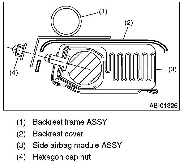 CAUTION: When attaching the side airbag module assembly, make sure to sandwich the seat backrest cover between the seat backrest side bracket and side airbag module.