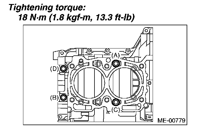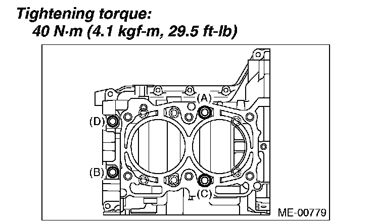 Tighten the LH side cylinder block connecting bolts (A D) further in alphabetical order.