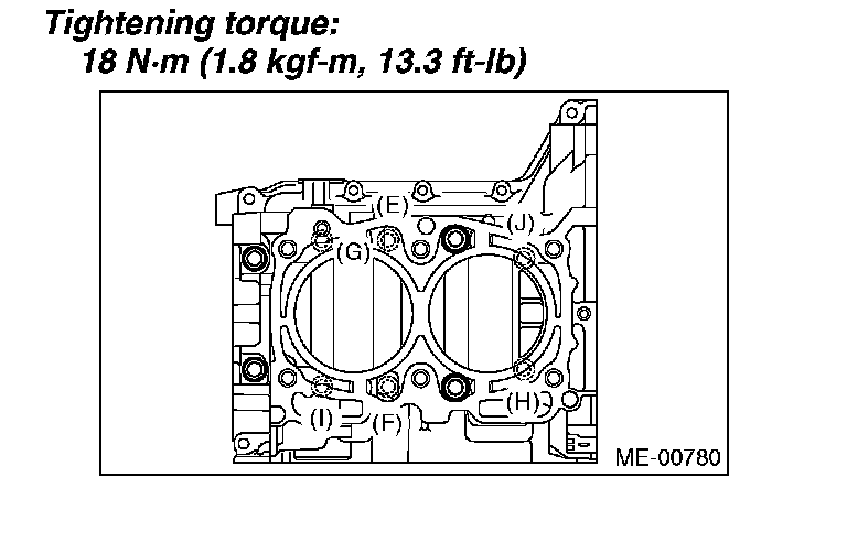 Tighten the RH side cylinder block connecting bolts (E J) further in alphabetical order.