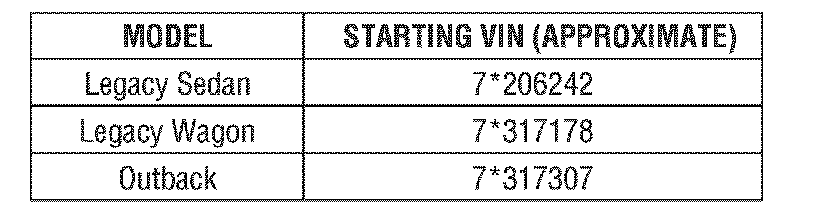 2007 and later Legacy and Outback Vehicles