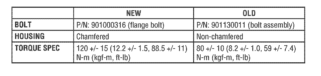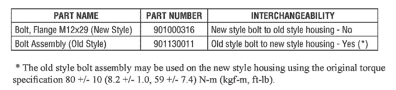 The flange bolt and new torque specification was used in production starting in September, 2006 with the VINs shown.