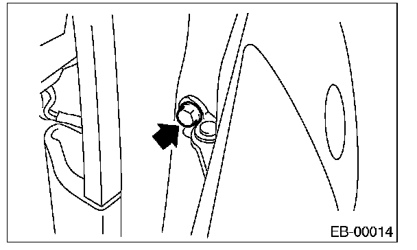 7. Remove the door-side bolts for upper and lower hinges to remove front door panel.