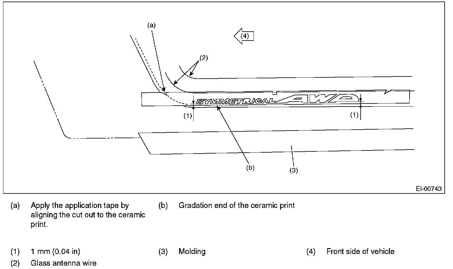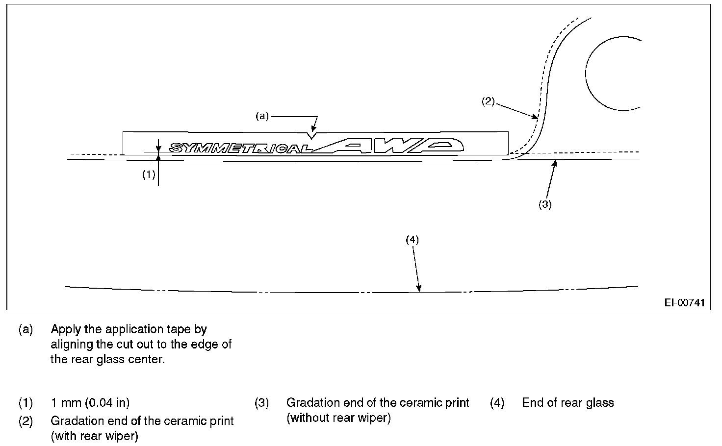 Apply the AWD sticker from inside of the glass according to the following dimensions.