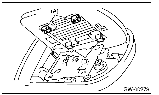5. Catch the hooks (B) and install clips (A).