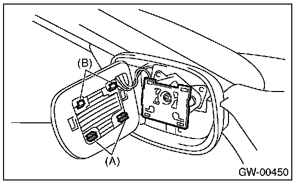 - When removing the mirror, be careful not to damage the back surface of mirror with a flat tip screwdriver.