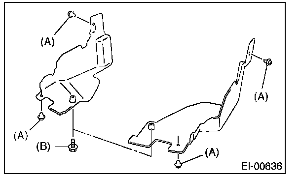 2. Remove clips (A) in front fender and bolts (B), then remove the front under cover.