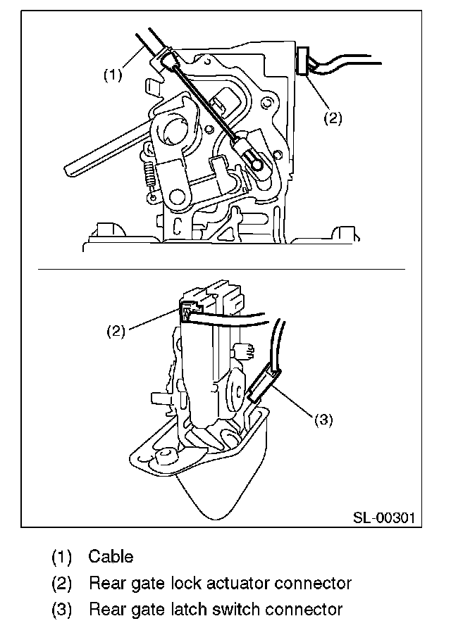4. Disconnect connectors and cables of the rear gate handle.