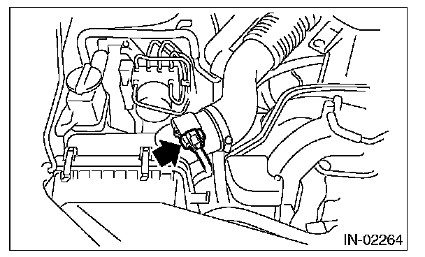 3. Disconnect the connector from mass air flow and intake air temperature sensor.