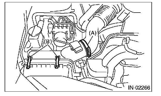 5. Remove the clip (B) securing the upper side of air cleaner case.